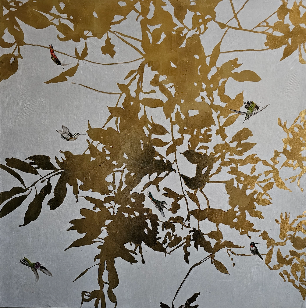 Lovely and serene hummingbird painting, by Gwen Wong. Her paintings are both representational and subjective in nature and represent a nostalgic nod to the past, present and future. A fourth generation Chinese American, Gwen has a BFA in Scientific Illustration and currently lives in Augusta, Georgia.