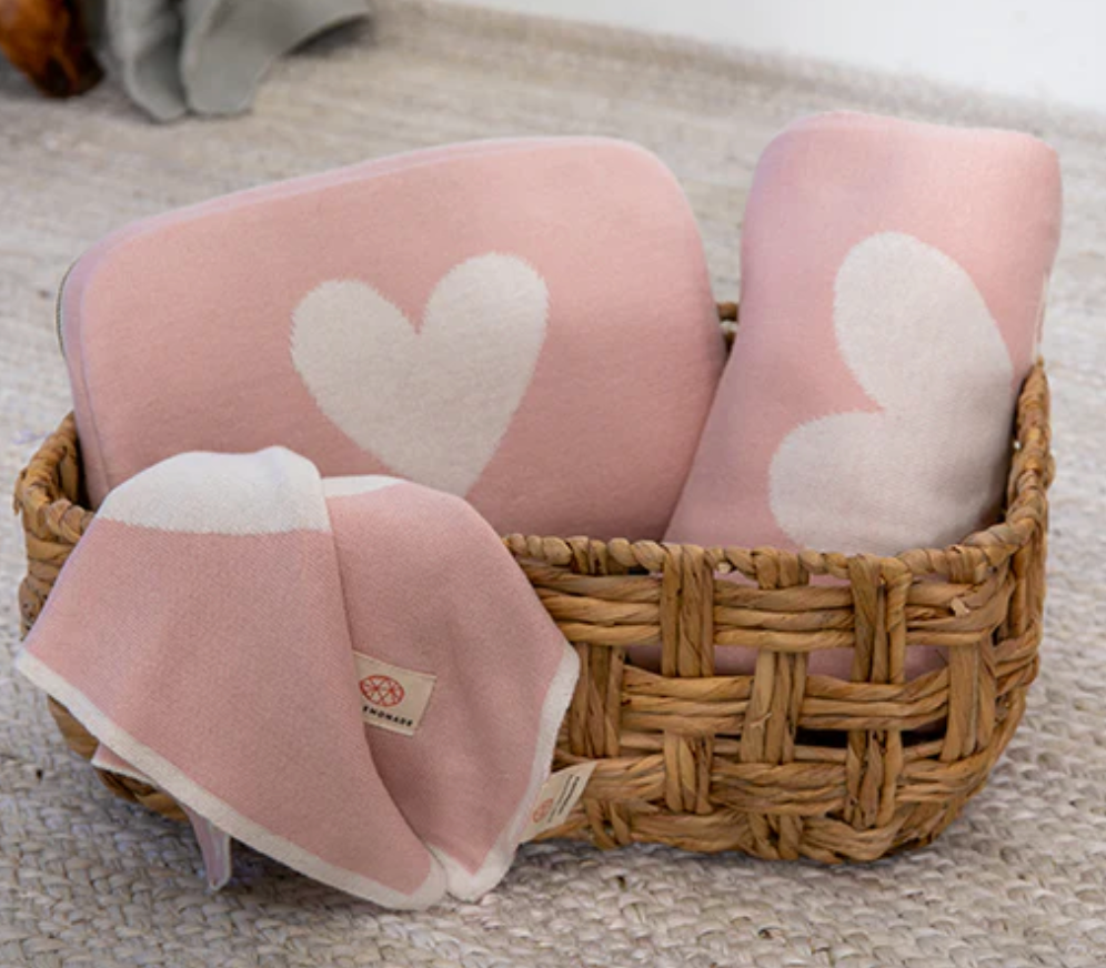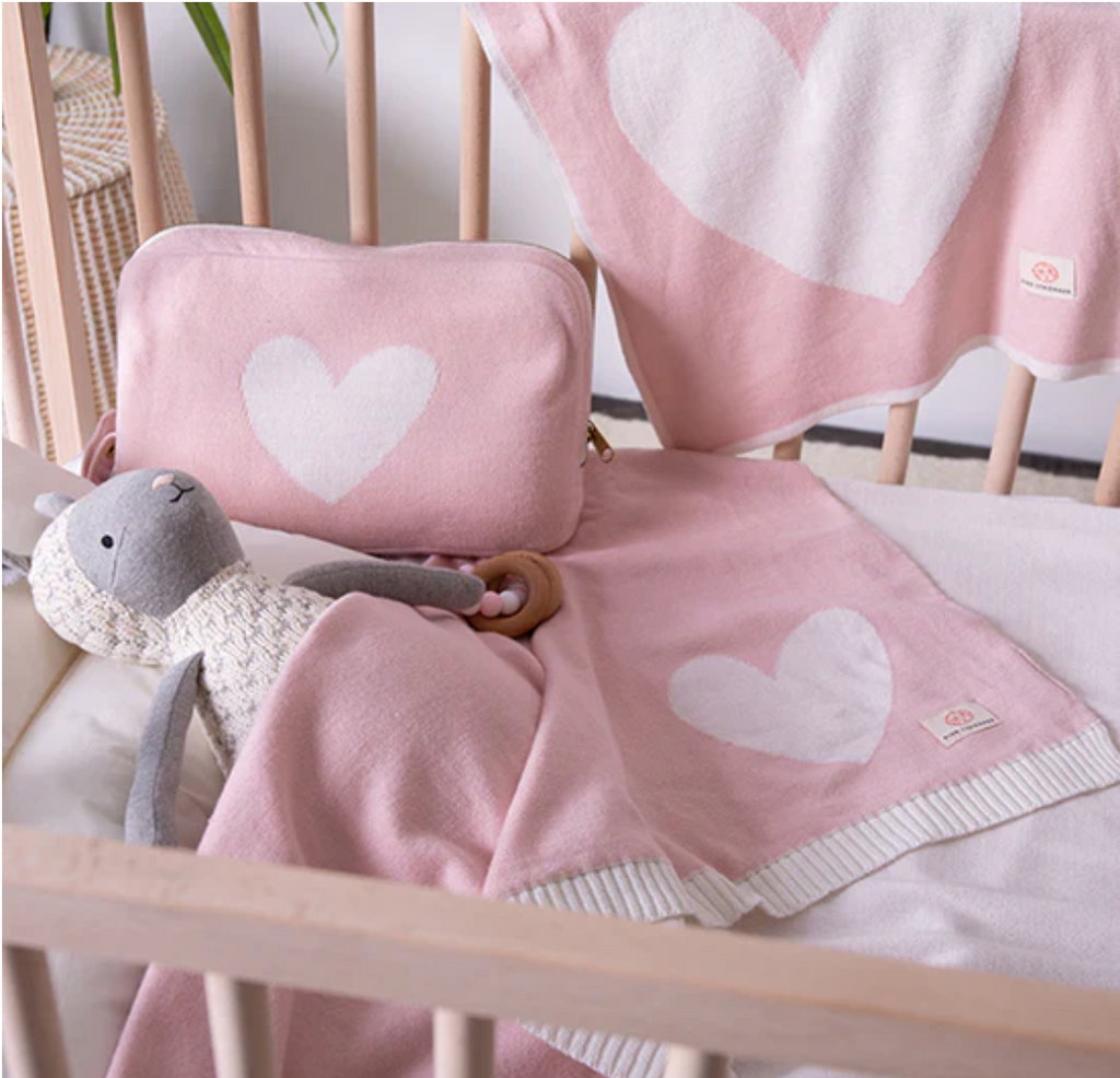 Heart Organic Cotton Baby Blanket and Burp Cloth Set