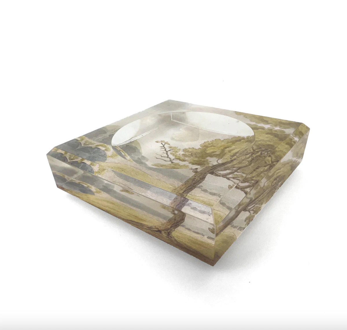 A beautiful block style acrylic soap dish with the Savory Tree print. This is the perfect accompaniment to our intaglio soaps.