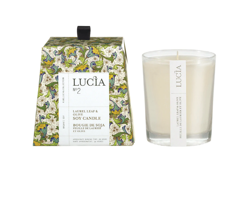 No. 2 This Laurel Leaf & Olive candle made from 100% organic Soy is ideal for evening relaxation, bath time bliss or to create a soothing and uplifting atmosphere. Burning cleanly for many hours all Lucia candles are a safe and environmentally friendly alternative to existing petroleum based paraffin candles. Our organic Soy is sourced from farming collectives all over the world encouraging