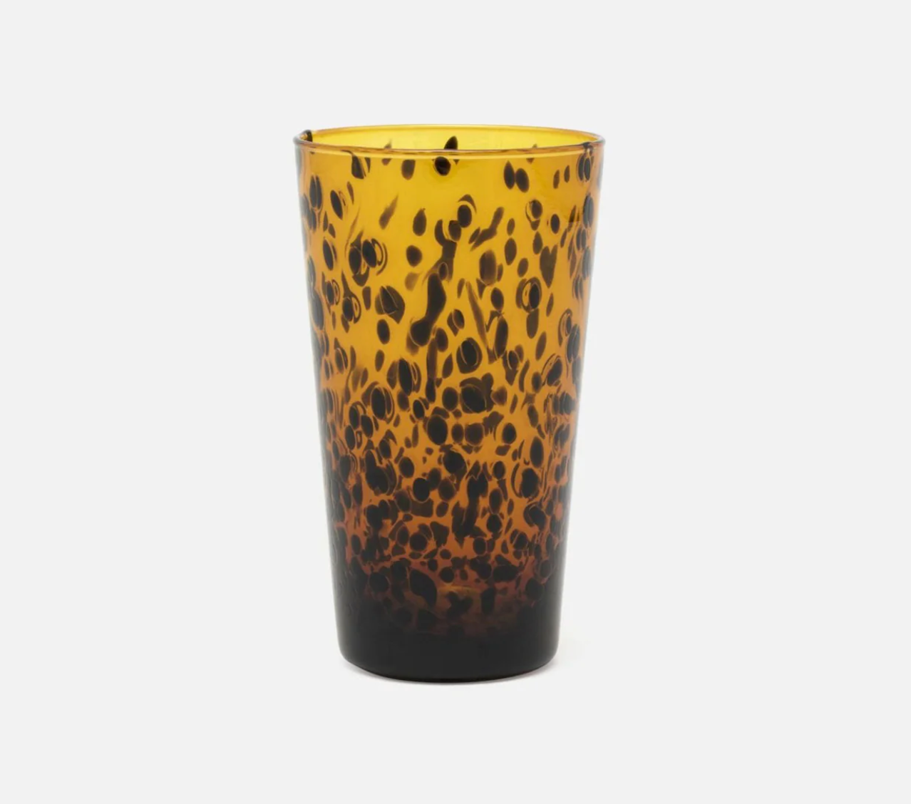 Durable hand-blown glass highball in a tortoise shell pattern create a statement that is as celebratory as the drinks they hold.