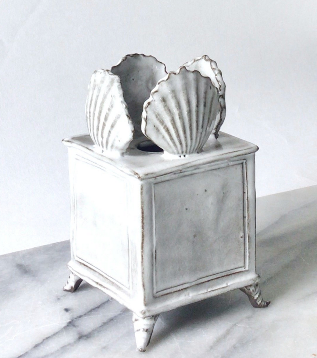 Ceramic White Crackle by Furbelow & Bibelot , makers of fine receptacles, urns and tableware. Crafted in upstate New York.