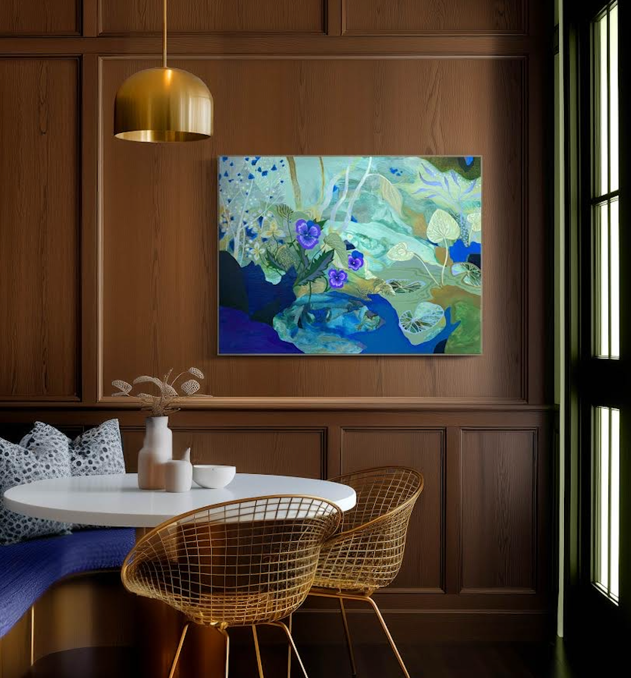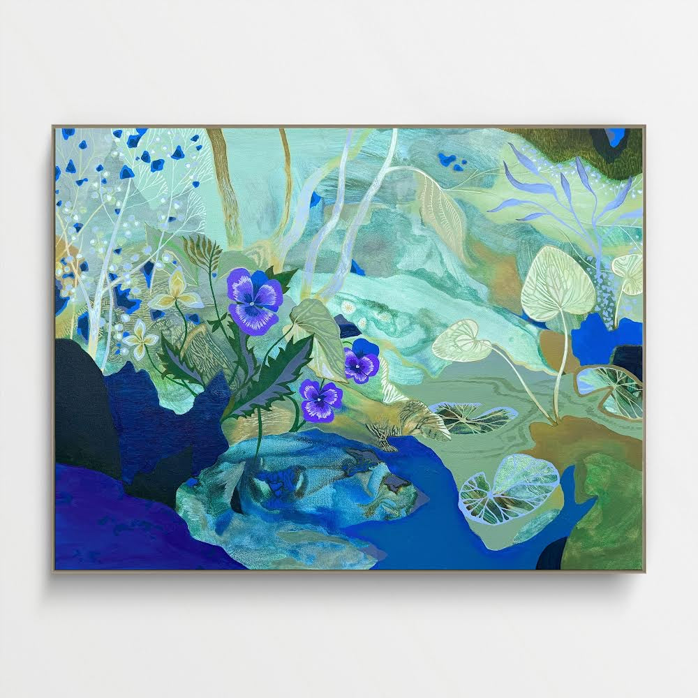 My original paintings explore the relationships between the world we live in and the worlds we sense, but can’t perceive directly. Phantasmagoric patterns riff in and out of natural subject matter, yielding imagery that is at once contemplative and energetic. When I paint, I examine the life forms and landscapes we so often take for granted, and try to conjure what their secret lives might reveal. My pieces weave together the fleeting and the eternal, the ordinary and the Divine.