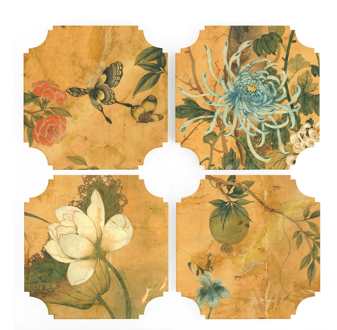 Asian inspired, watercolor coaster set. Includes 4 unique coasters.