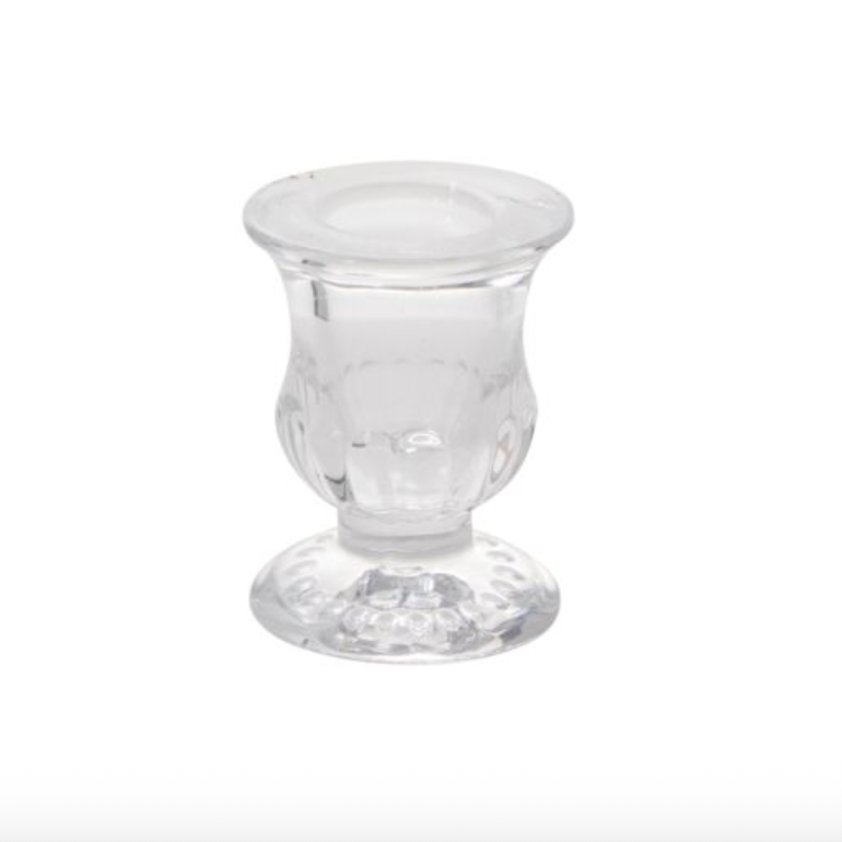 When a simple but classic candleholder is just what you need for styling an event space, bring in the clear, pressed glass Bellamy Candleholder. This footed glass taper holder is urn shaped, with a slightly flared opening and deep well so that candles fit securely. The simplicity of design makes these ideal for styling along a table or mixing in with other glass taper holders for a collected, elevated look. The Bellamy Candleholder fits beneath the 2.5 inch diameter Glass Sleeve, which is sold separately.