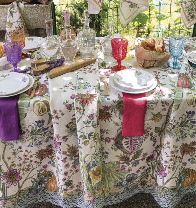 At the end of the 19th century in France, skilled craftsmen reproduced the beauty of nature on fabrics with realism, technique and elegance. Thus, inspired by the wonderful jacquard and printed fabrics of Lyon, the BILOBA tablecloth was born, printed on pure bleached linen, a mix of elegance in the design and refined retro taste. 100% Linen