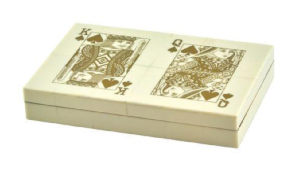 Card games have never been more elegant than with this beautifully crafted inlaid bone playing card box set. Sure to be a delightful conversation-starter at any card night, our unique card carrier is a distinguished addition to the entertainment.