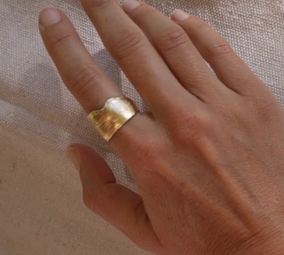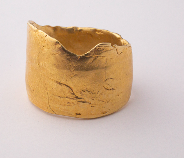 Hand sculpted and cast, 14k gold plated. Inspired by rock formations and the imperfections found in nature.