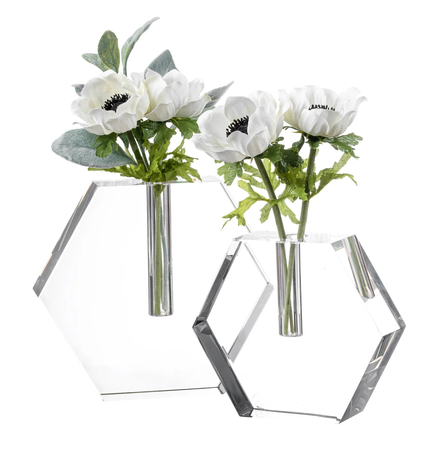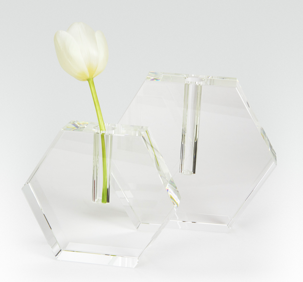 Hexagon Shape  Flat Crystal Bud Vase in Small and Large