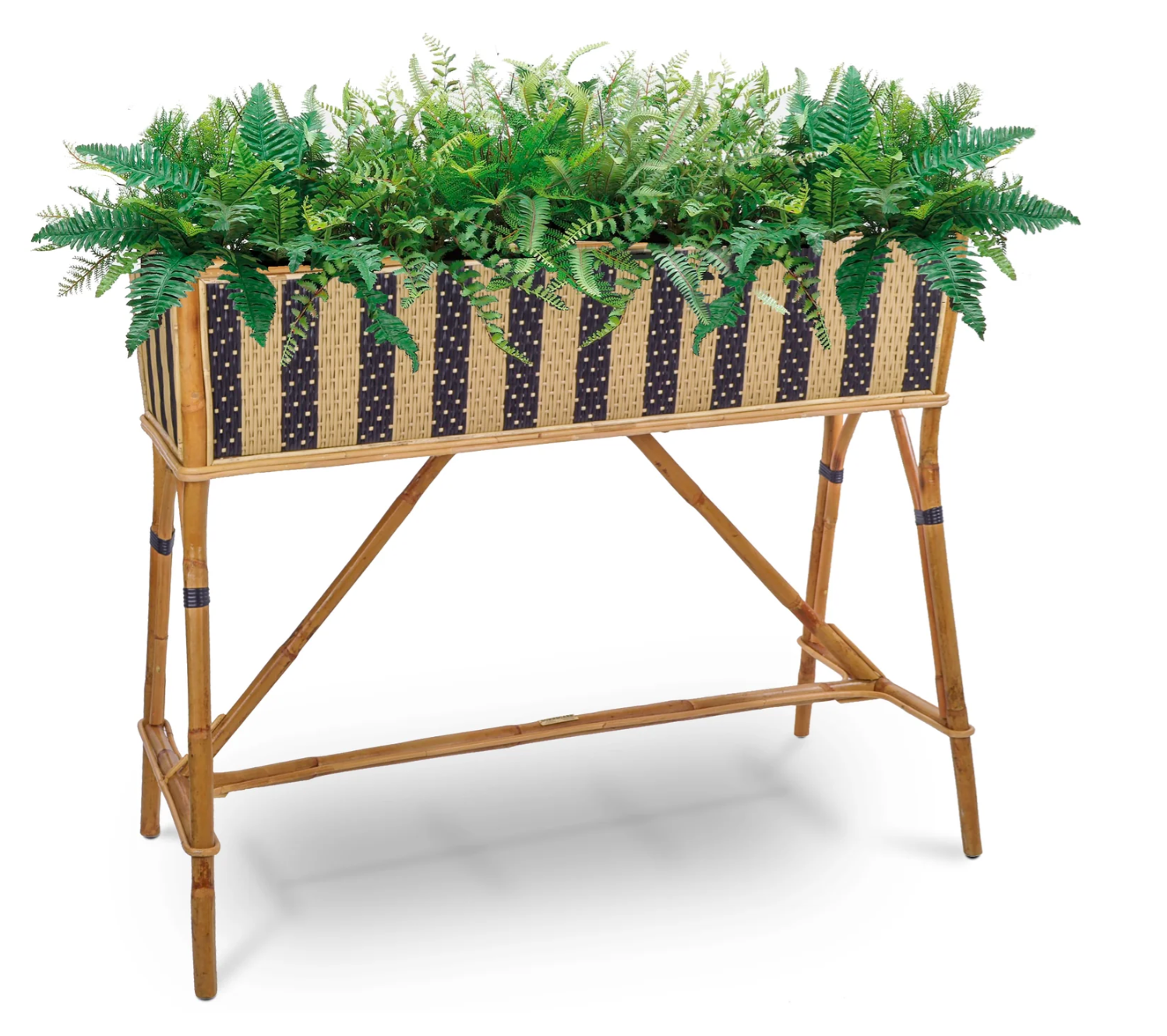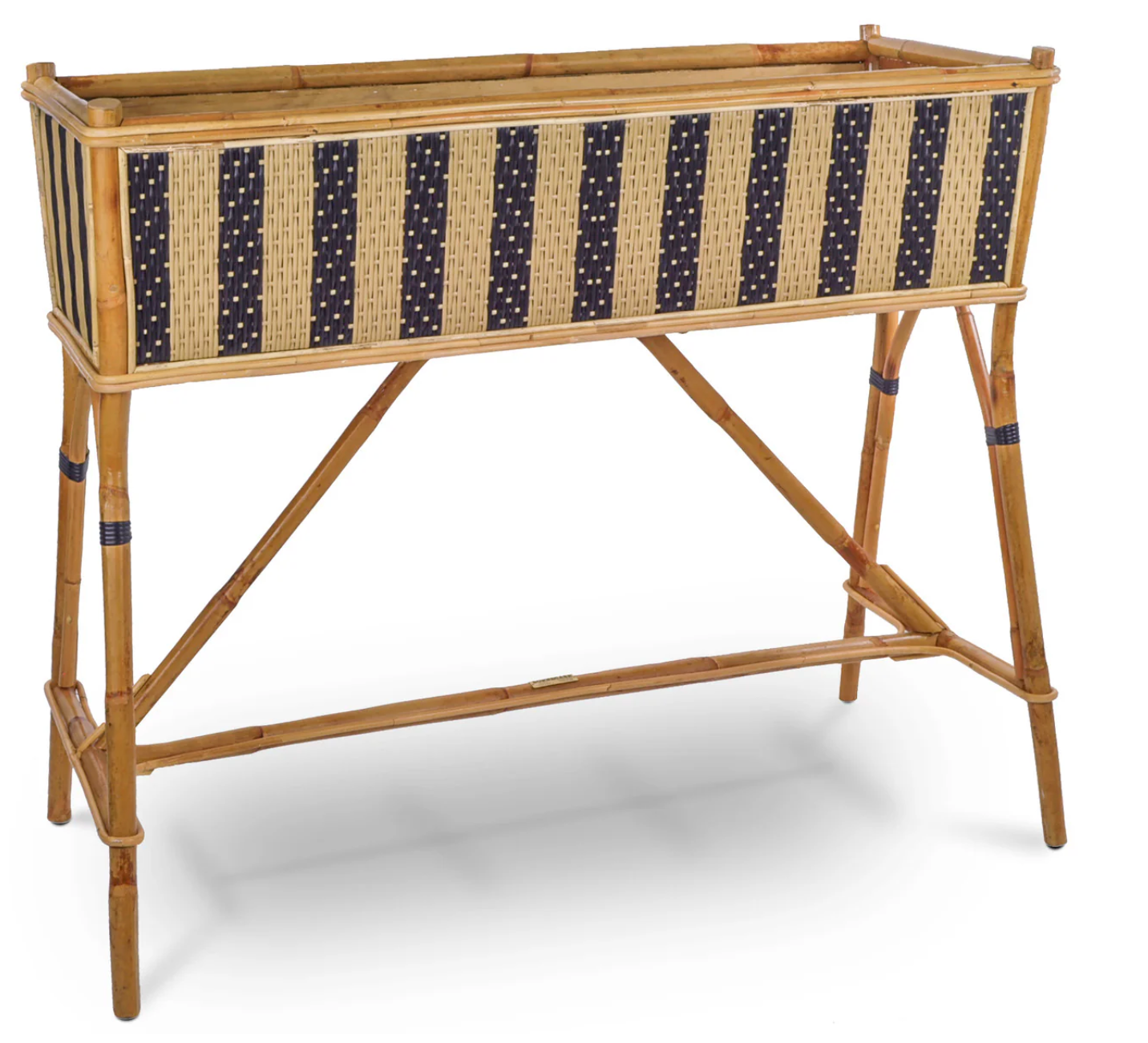 French Bistro Rattan Planter with Stand, Arrows with Stripes - Black/Gold