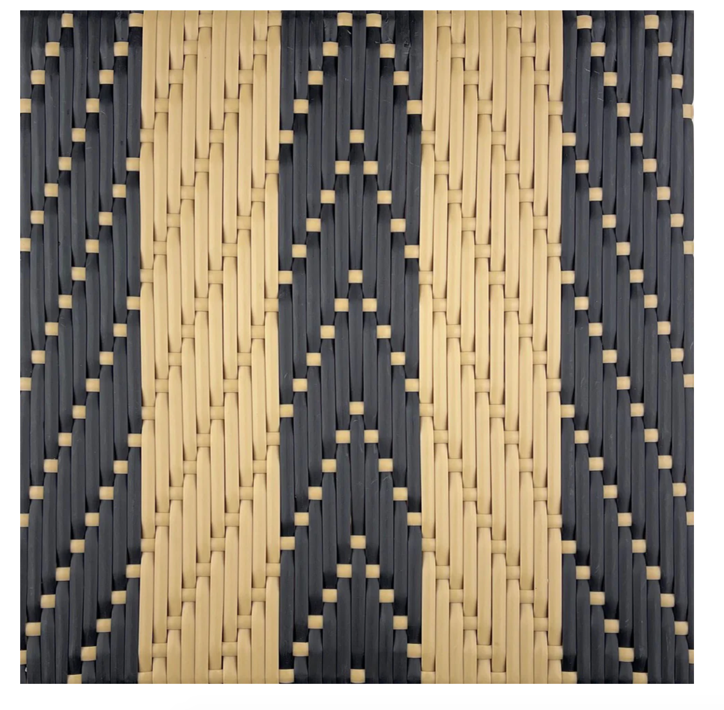 Our weaving material is a high-quality, virgin HDPE (high-density polyethylene). HDPE is a highly sought-after material for use in outdoor applications, as it is UV resistant, impervious to mold and mildew, resistant to extreme temperatures (heat and cold), and waterproof. Virgin HDPE also offers excellent impact resistance and a high tension strength. It is easy to clean using a mild soap detergent with a soft sponge and rinse with water.