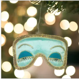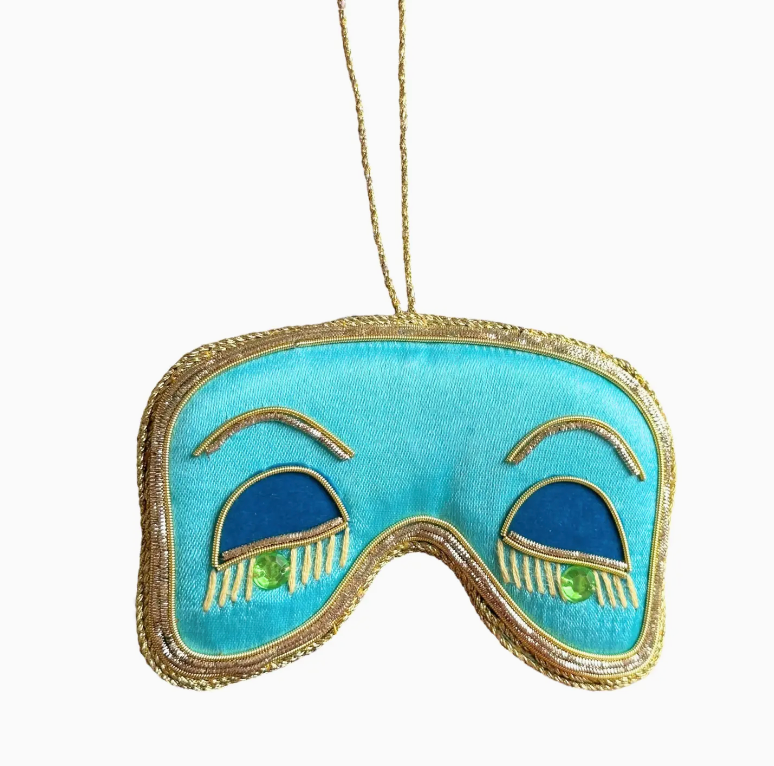 The classic "Holly Golightly" sleep mask has been hand-embroidered into a delightful holiday ornament - perfect for adding a dash of stylish flair to your tree this holiday season! Whether you go wild for Audrey Hepburn or just love a good night's rest, this ornament is a "sleeping" beauty. Ornaments are for making memories, this beautiful handmade ornament is the perfect gift for the movie lovers in your life and the perfect collectible holiday ornament for any home.